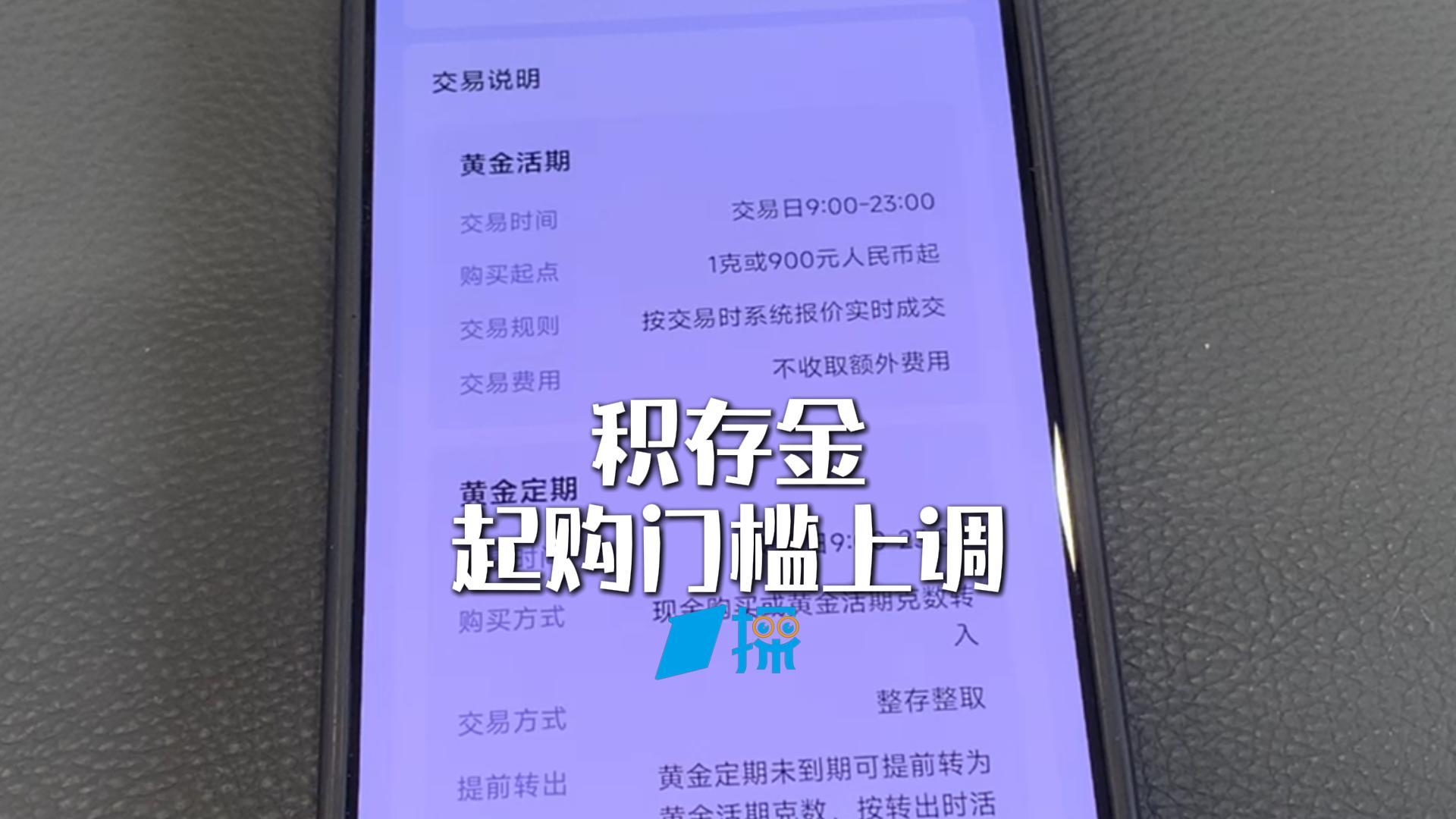 近日,黄金价格持续走高且高位震荡,多家银行上调了积存金的起购金额。第一财经记者实地探访了深圳多家银行网点发现,按金额购买的门槛大多已上调至800元以上,按克重购买则仍维持在1克起购。尽管投资门槛抬高,但市场购金热度依旧。业内预计,随着黄金长期走势看涨但短期震荡加剧,银行采取这类风险控制措施的趋势将会增加。