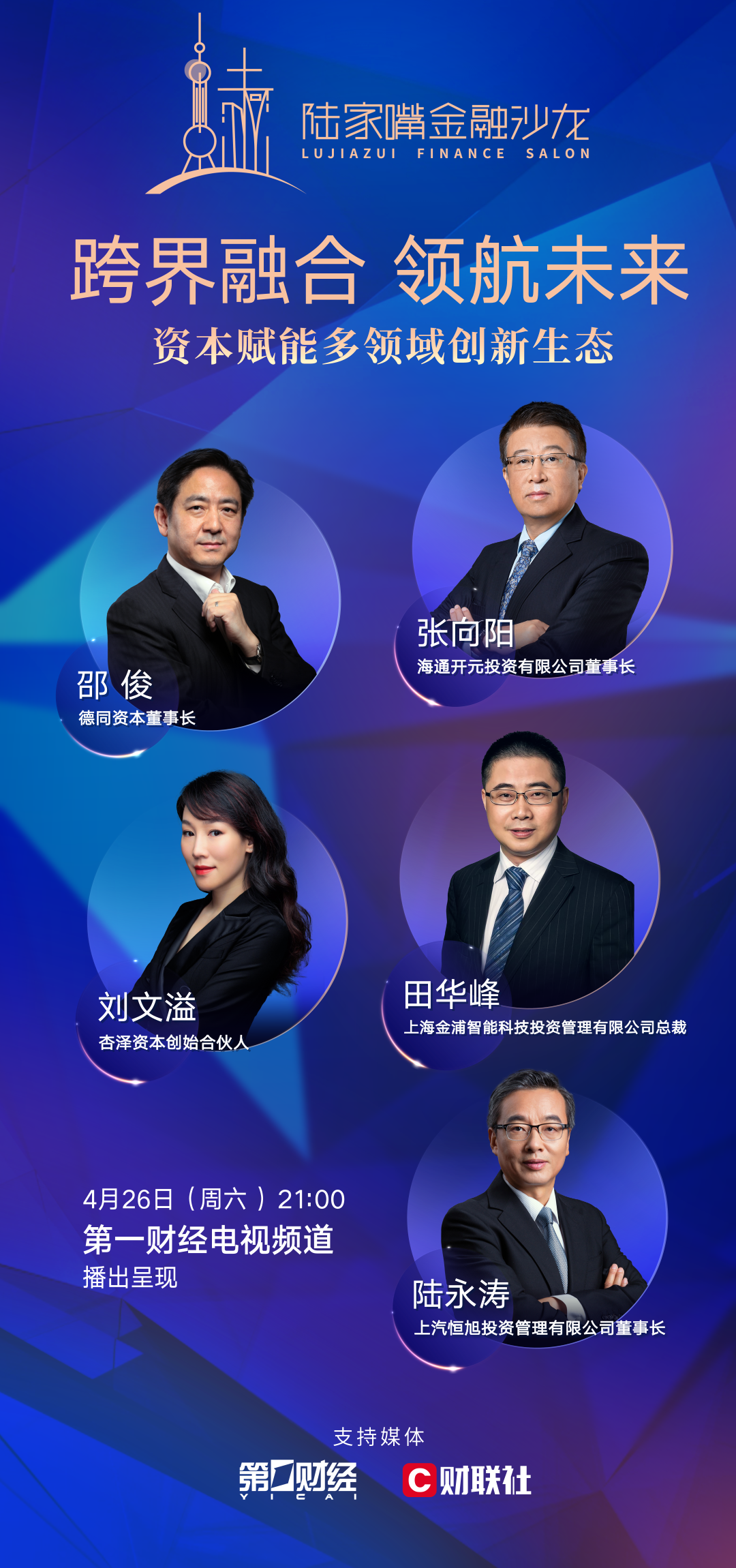 更多详细内容,敬请关注电视节目播出:第一财经频道4月26日21:00;4月27日13:20《跨界融合,领航未来:资本赋能多领域创新生态》。