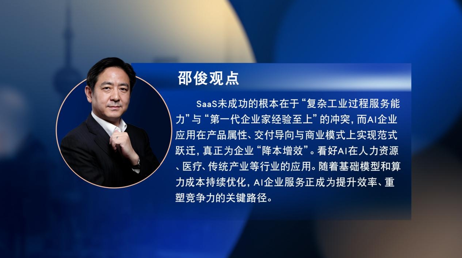 邵俊指出,AI与传统SaaS有本质区别,AI聚焦结果交付,满足企业降本增效需求,且摒弃传统订阅模式,采用按结果或节省成本分成的商业模式,深受中国企业家认可。