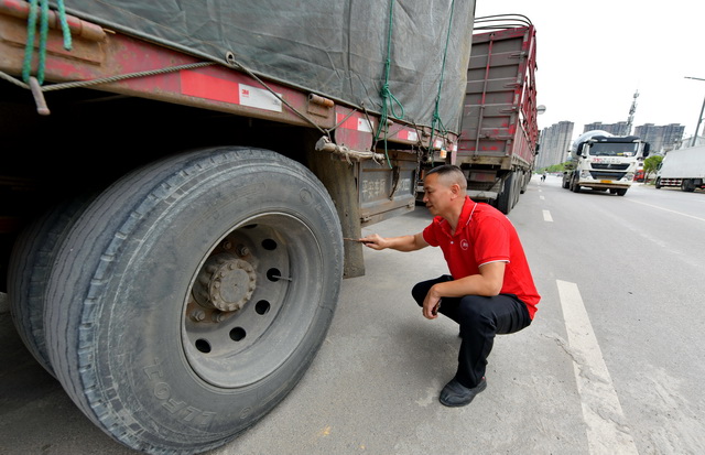 国家将试行货车差异化定期排放检验制度。图为货车司机在出车前对车辆进行检查。摄影/章轲