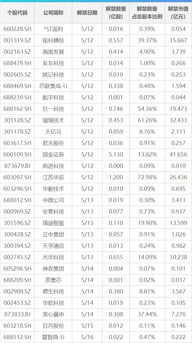 Wind数据显示,本周共有28家公司限售股陆续解禁,合计解禁10.66亿股,按最新收盘价计算,解禁总市值达186.3亿元。