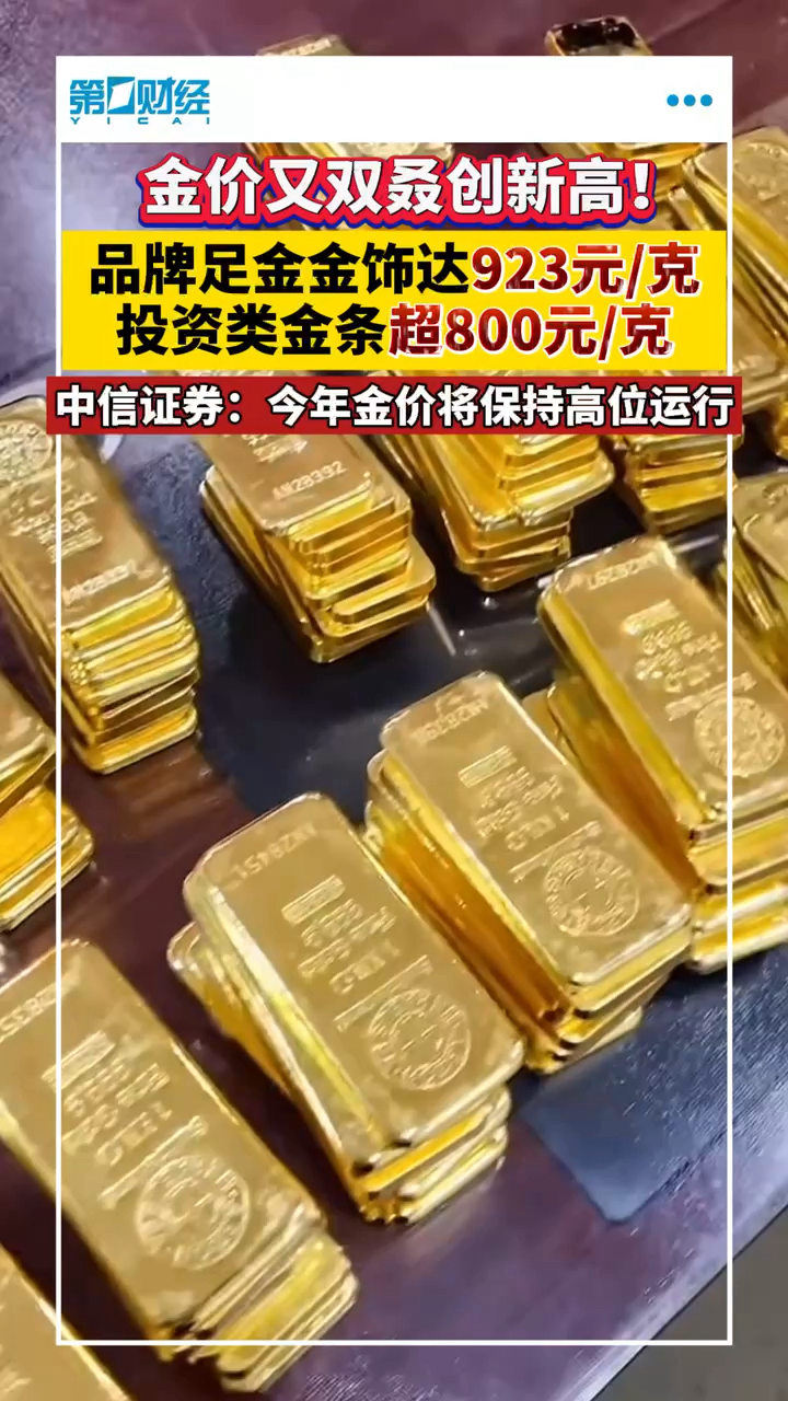 金价又双叒创新高!品牌足金金饰达923元/克,投资类金条超800元/克,中信证券:今年金价将保持高位运行