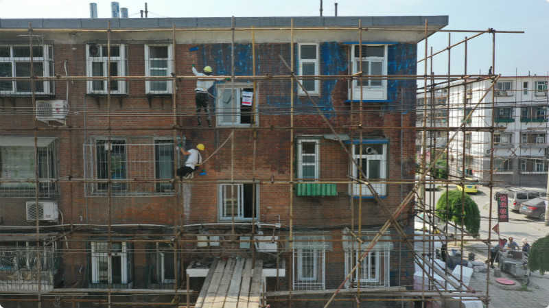 除了少数过于危旧、实施原拆原建的楼房,更多老旧小区采用的是原房修补的方式。比如,朝阳区百子湾路5号院1号楼目前正进行外墙保温、室内装修等方面的施工作业,整体工程量已经完成超过70%,预计到今年6月底,项目将全面完工交付。