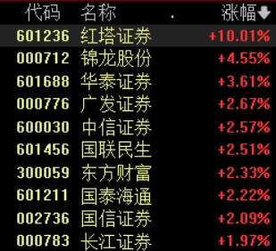 13:18 券商股午后拉升,红塔证券涨停,华泰证券、广发证券等跟涨。