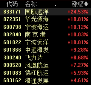 10:41 航运概念延续强势 宁波海运、宁波远洋等涨停