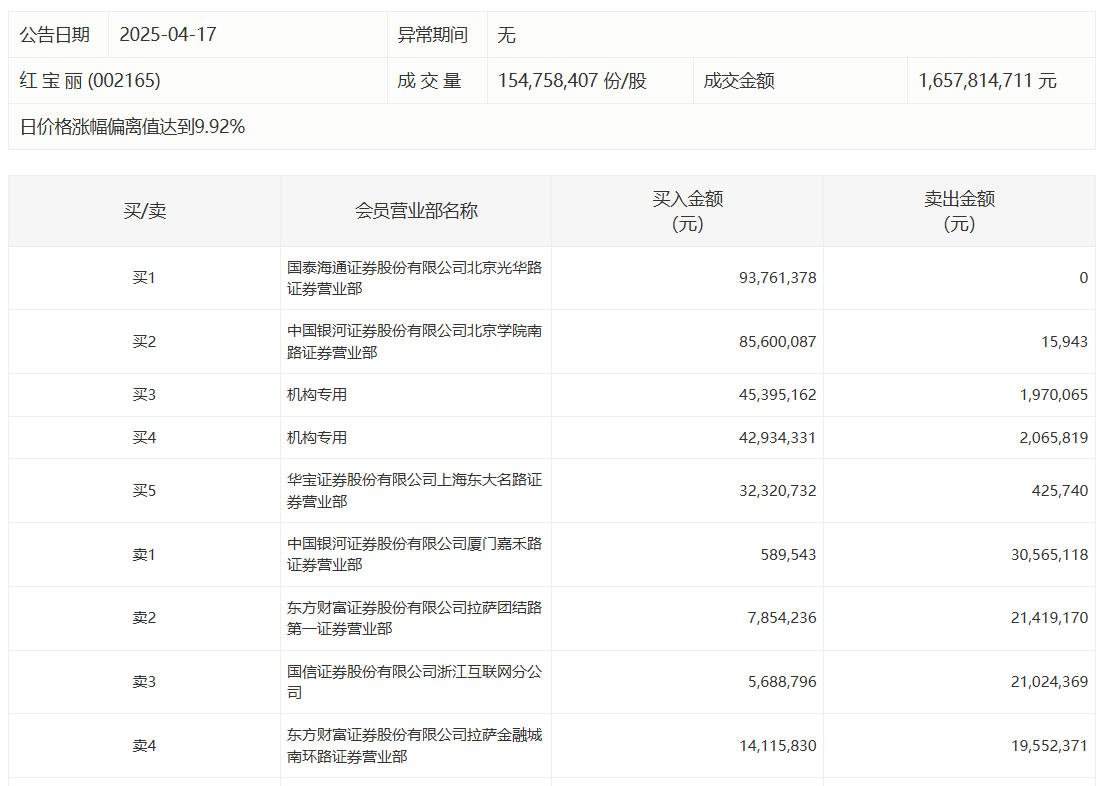红宝丽今日涨停 国泰海通北京光华路营业部净买入9376.14万元