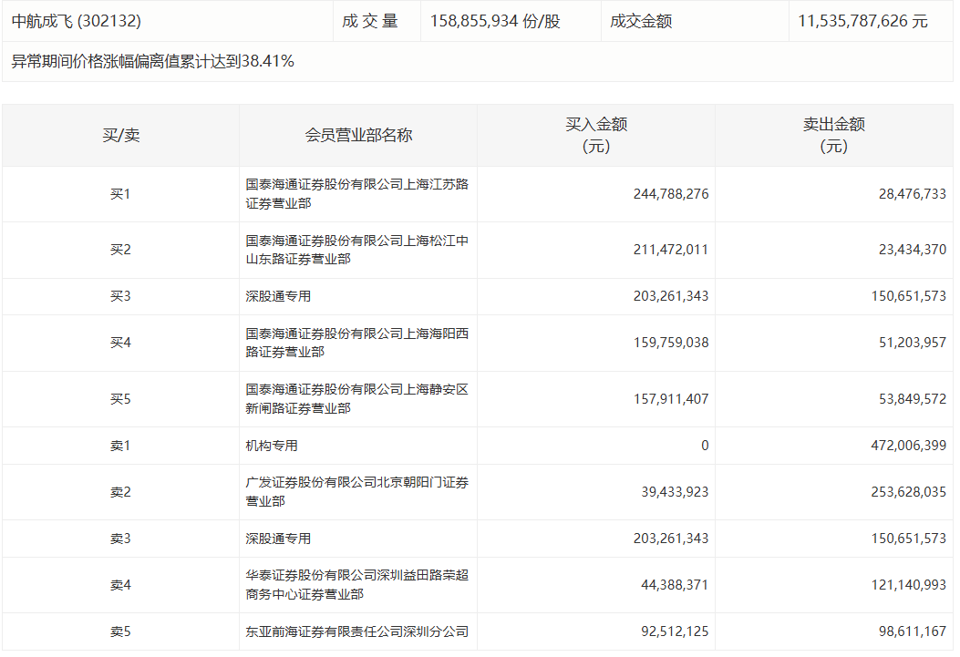 中航成飞今日20%涨停,一家机构专用席位净卖出2.13亿元