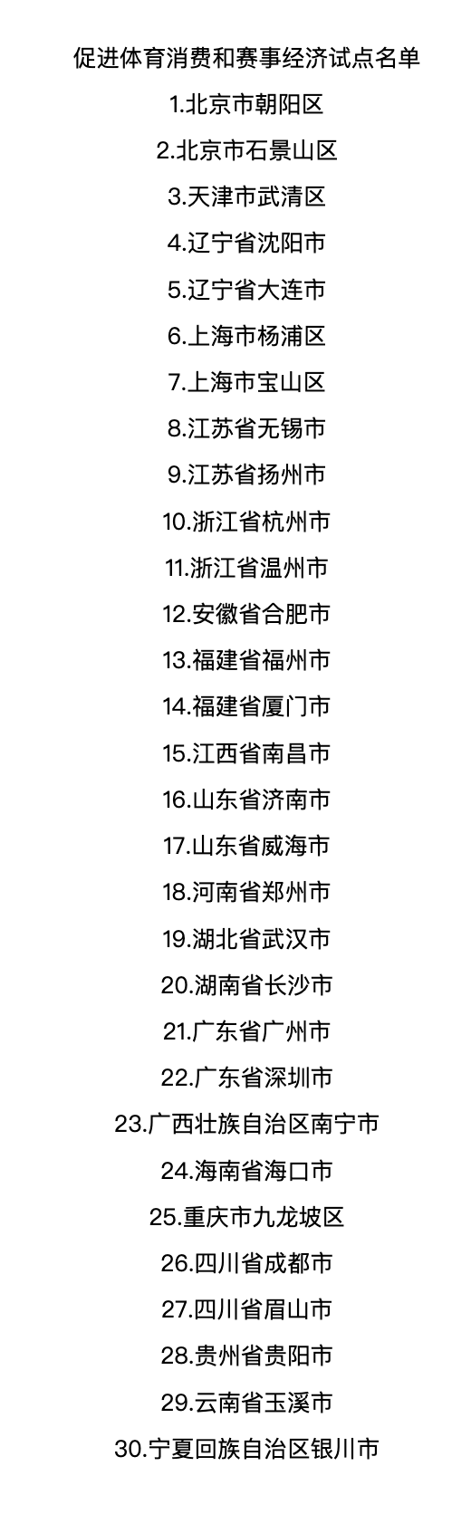 体育总局办公厅公布促进体育消费和赛事经济试点名单
